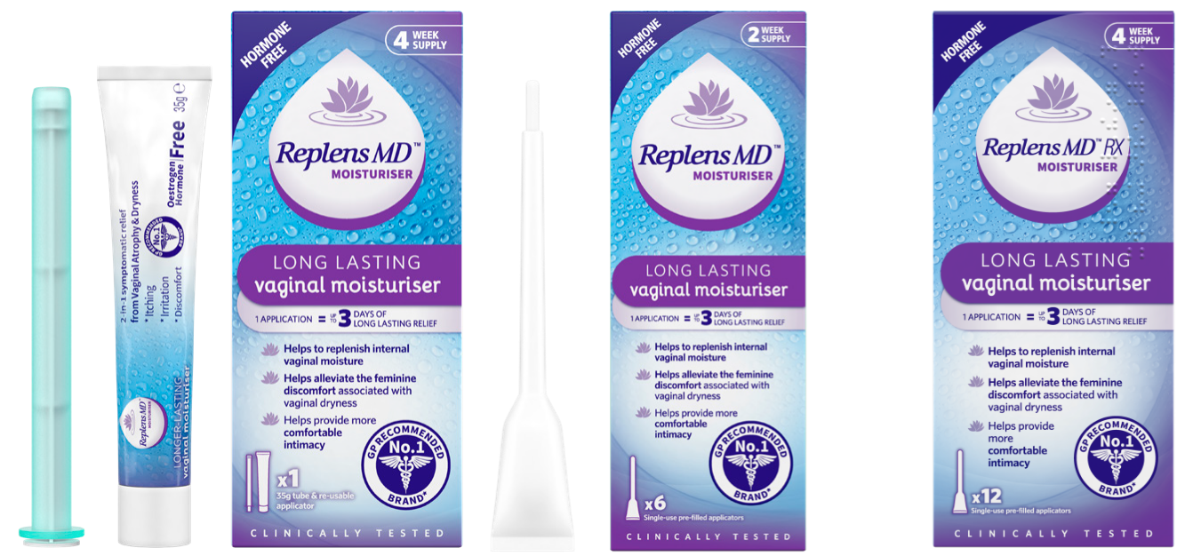 Replens MD™ Moisturiser provides immediate relief to dry vaginal cells. Hormone-free and can be used alongside HRT.